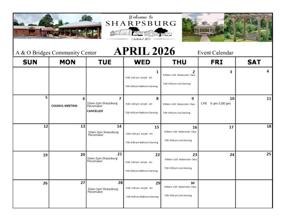 For additional information regarding rentals, please contact: Angie Moore, Community Center Coordinator 770-251-4171 ext. 3 aobridgescc@sharpsburg-ga.gov Office hours: Monday through Thursday 9:00 am - 4:00 pm